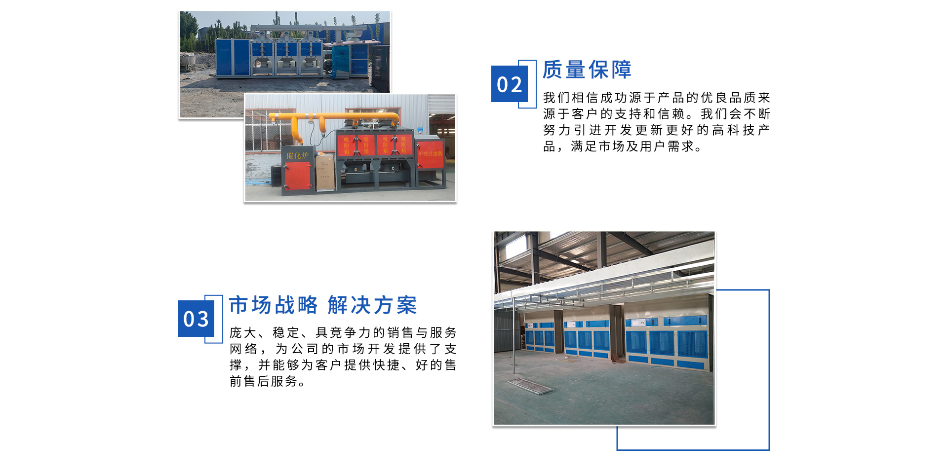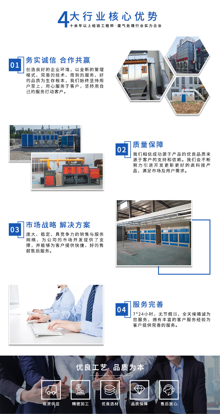 公司自成立以來(lái),始終專注于工業(yè)廢氣、污水、粉塵等環(huán)境污染的治理,先后研發(fā)出催化燃燒設(shè)備、光氧催化廢氣處理設(shè)備、低溫等離子廢氣處理設(shè)備、粉塵處理-體化設(shè)備等一系列環(huán)保設(shè)備,產(chǎn)品先后通過ISO901質(zhì)量管理體系認(rèn)證、中國(guó)環(huán)境保護(hù)產(chǎn)品認(rèn)證。